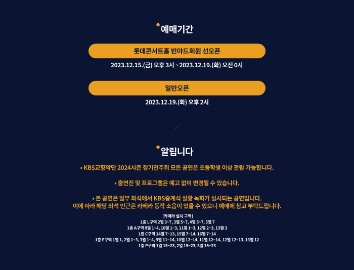 • ※ 본 공연은 1부, 2부 모두 중간 입장 없이 진행됩니다.